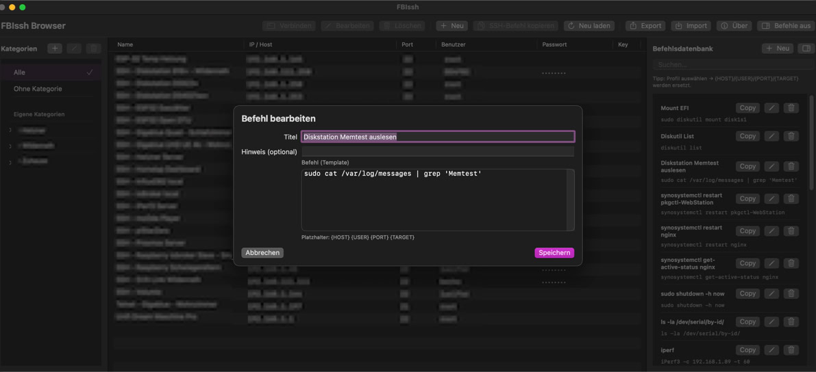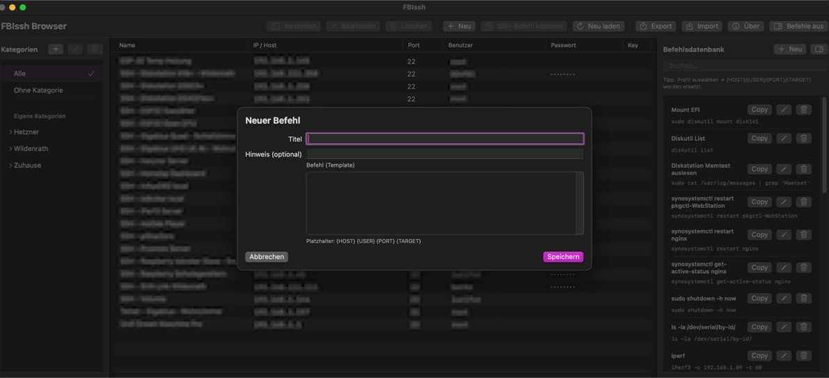 FBIssh ist ein macOS-Tool für alle, die regelmäßig per SSH arbeiten: Profile, Key-Dateien, Kategorien und eine praktische Befehlsdatenbank – alles lokal gespeichert.
