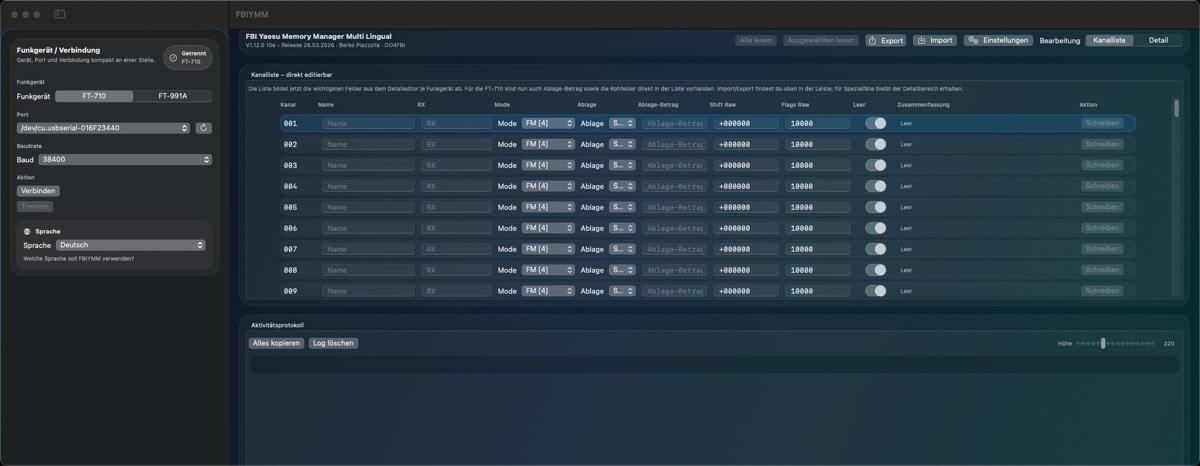 FBIYMM - DAS Tool zur Verwaltung der Speicher der Yaesu FT-991a und FT-710